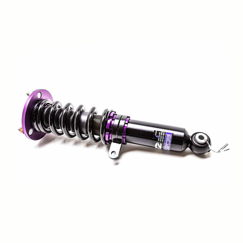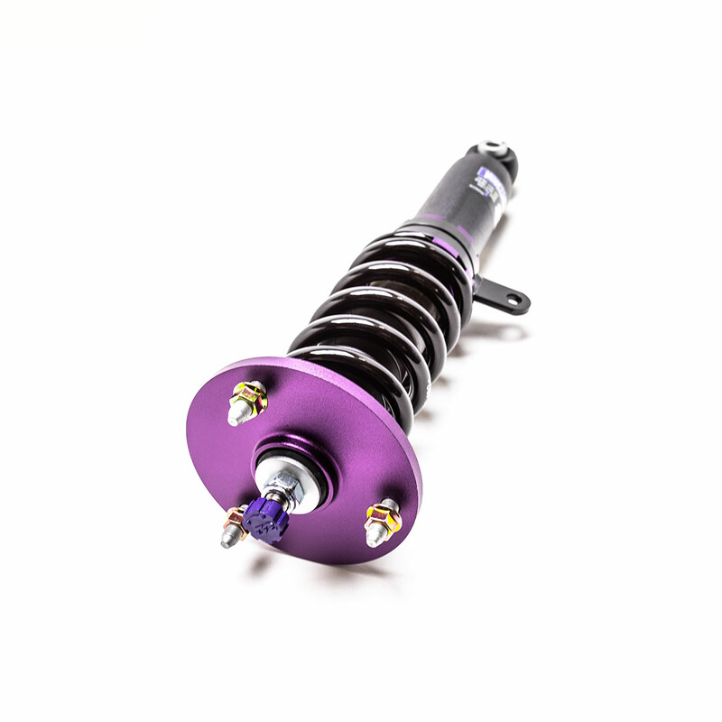 La gamme Street est la plus populaire chez D2, avec des combinés filetés polyvalents de très haute qualité. Excellent compromis entre confort et performance, ces suspensions sont parfaitement adaptées aux véhicules à usage routier et quotidien, et permettent également la pratique occasionnelle du circuit grâce à leur larges possibilités de réglage et d'adaptation : la hauteur se règle indépendamment de la précharge du ressort, assurant un amortissement performant en toutes circonstances, jusqu'aux niveaux de rabaissement les plus bas. Le carrossage est réglable à l'avant via la coupelle d'amortisseur pour les jambes de force McPherson.
