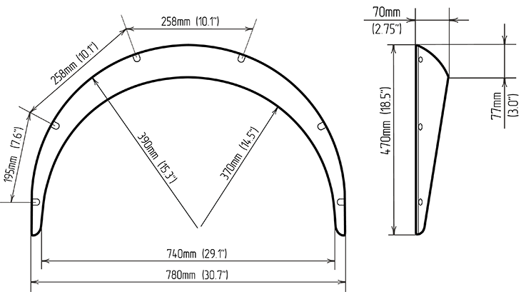 Allliant à la perfection un design old-school et une conception moderne, ces extensions d'ailes sont fabriquées en plastique ABS noir de 2 mm d'épaisseur, ultra-flexible et extrêmement résistant, comme en témoigne la photo ci-dessus. Elles peuvent être thermoformées si nécessaire, et sont dotées d'un revêtement anti-UV. Ces caractéristiques uniques assurent une résistance à toute épreuve et une adaptation aisée à toutes les formes de carrosserie, pour une tenue dans le temps exceptionnelle.