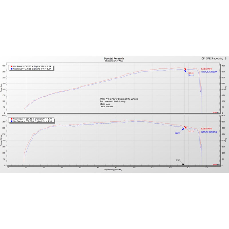 Offrant un gain de 15 à 18 ch, le système d’admission Eventuri pour Mercedes pour A45, CLA45 et GLA45 (moteur M139) a été conçu pour offrir au turbo un trajet d’air plus direct et fluide. En optimisant le parcours du flux, le turbo atteint plus rapidement la pression de suralimentation cible tout en réduisant les pertes de charge. Ce système maximise le débit d’air tout en maintenant des températures d’admission basses, générant ainsi un gain de performance net, tout en permettant d’entendre plus distinctement le spool du turbo et d’accentuer la dynamique de conduite.