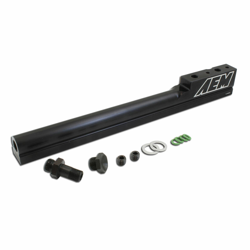 Fabriquées aux Etats-Unis, les rampes d'injection AEM sont réalisées intégralement en aluminium forgé et s'installent en lieu et place de l'origine grâce aux accessoires de montage fournis. Avec leurs entrée et sortie taraudées en 9/16"x18, elles peuvent également être utilisées avec un circuit d'essence sur mesure en Dash 6.
