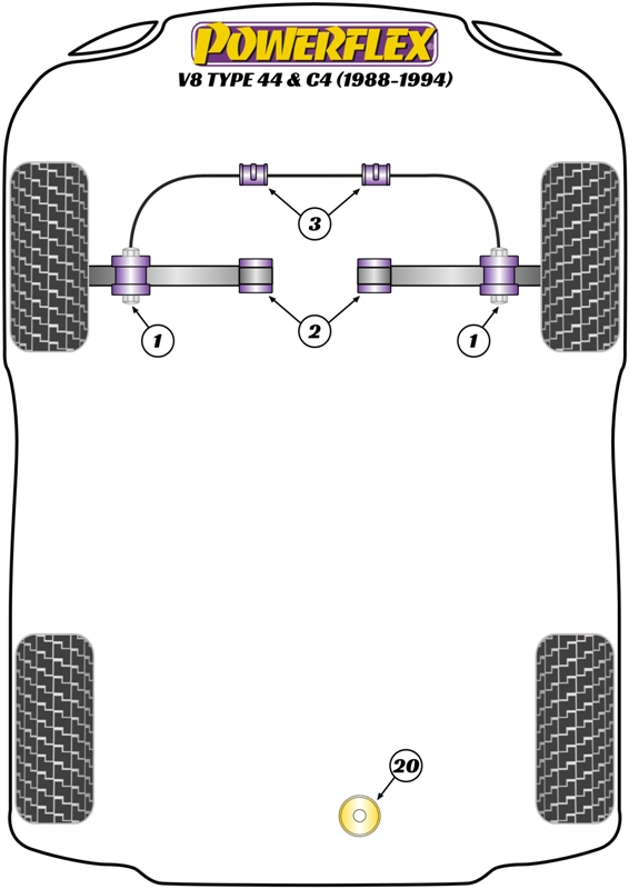 Spécifications des Silentblocs Powerflex pour Audi V8 Typ 44 & C4 (88-94)