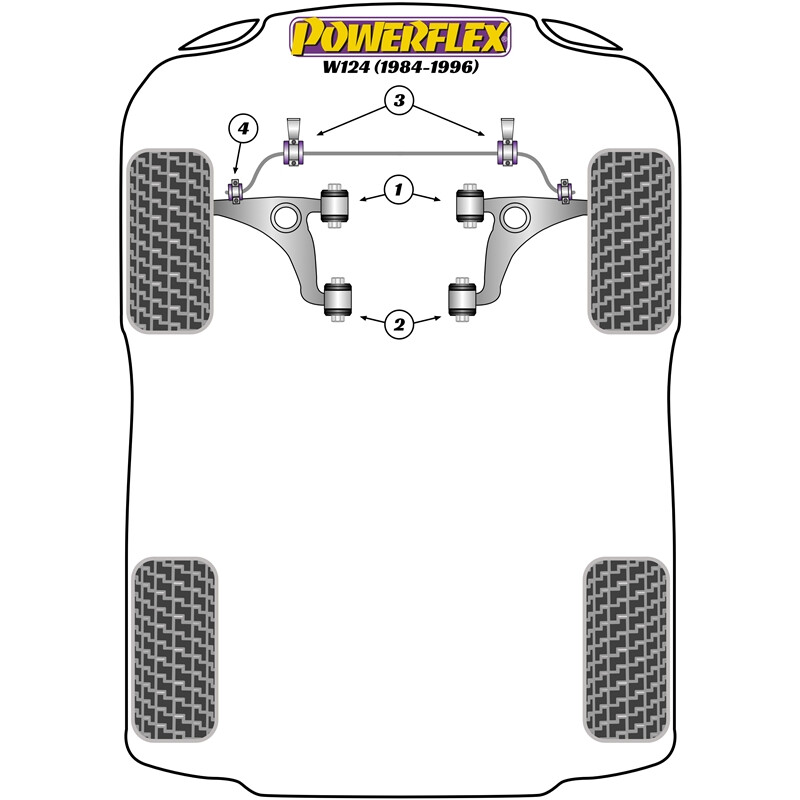 Spécifications des Silentblocs Powerflex pour Mercedes Classe E W124 (84-96)