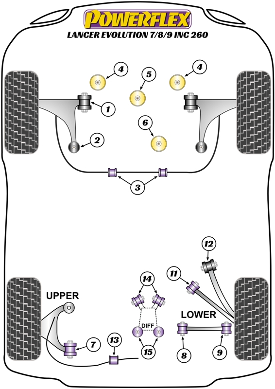 Spécifications des Silentblocs Powerflex pour Mitsubishi Lancer Evo 7 (VII)