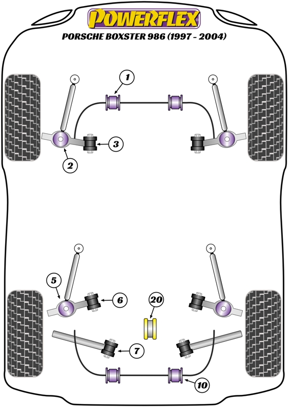 Spécifications des Silentblocs Powerflex pour Porsche Boxster 986 (97-04)