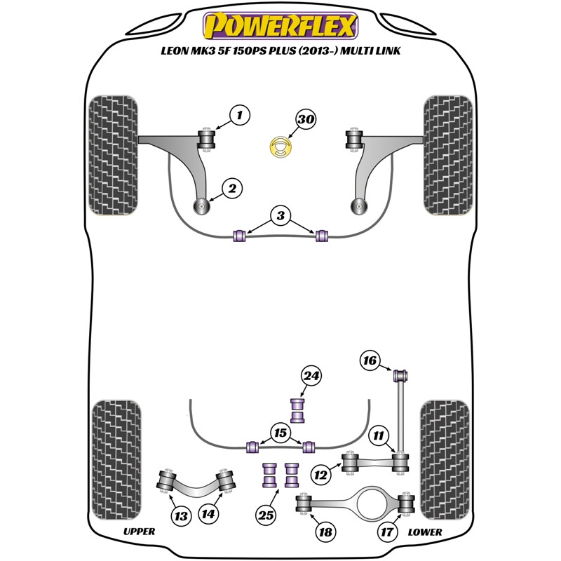 Spécifications des Silentblocs Powerflex pour Seat Leon 5F (+150ch, 2013+)