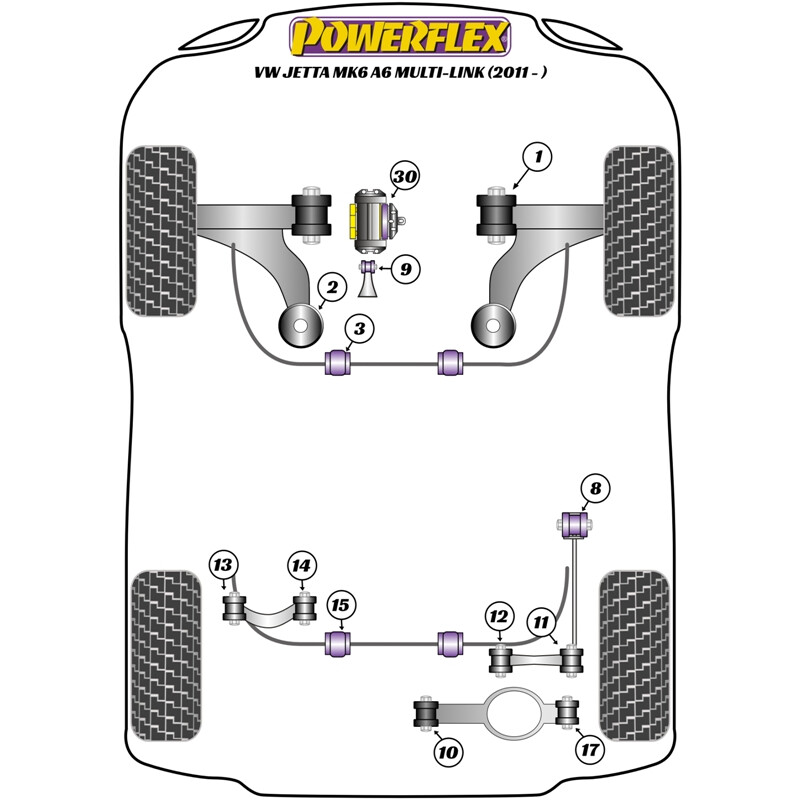 Spécifications des Silentblocs Powerflex pour VW Jetta MK6 (Multi-Link, 2011+)