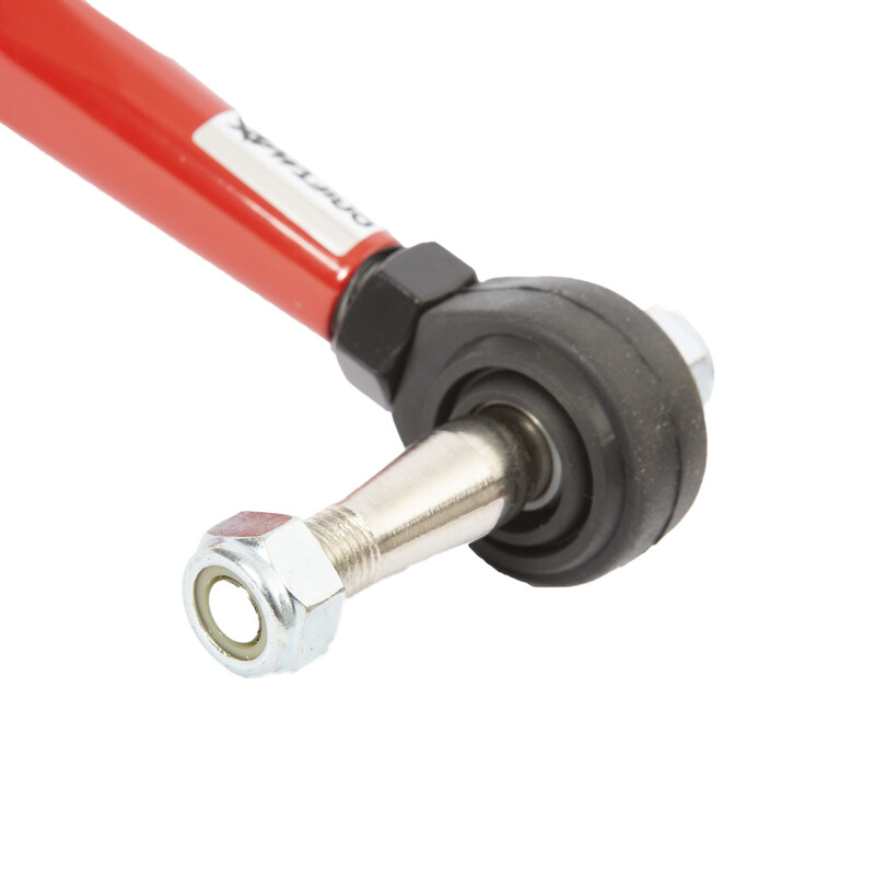Ces tirants réglables permettent d'ajuster l'ouverture et le pincement des roues arrière. Les rotules éliminent le jeu excessif causé par les bras d'origine et leurs silentblocs de mauvaise qualité, souvent usés par le temps et les kilomètres, et assurent un montage rigide, idéal en utilisation intensive (circuit, drift, etc.).