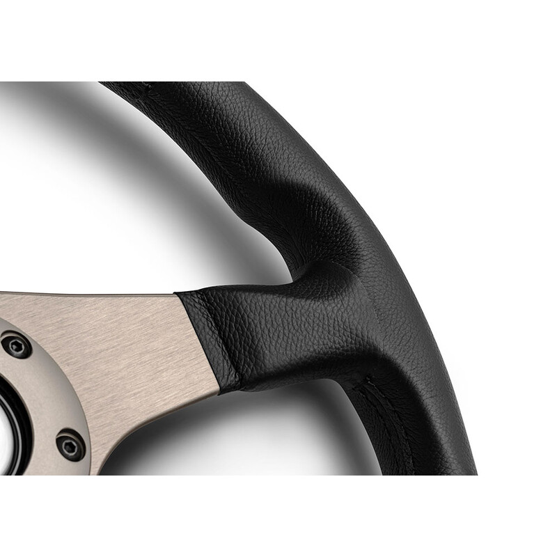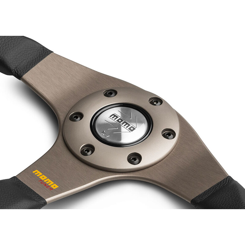 Volant Momo Tuner Tulipé (36 mm), Cuir Noir, Branches Anthracite - 35 cm